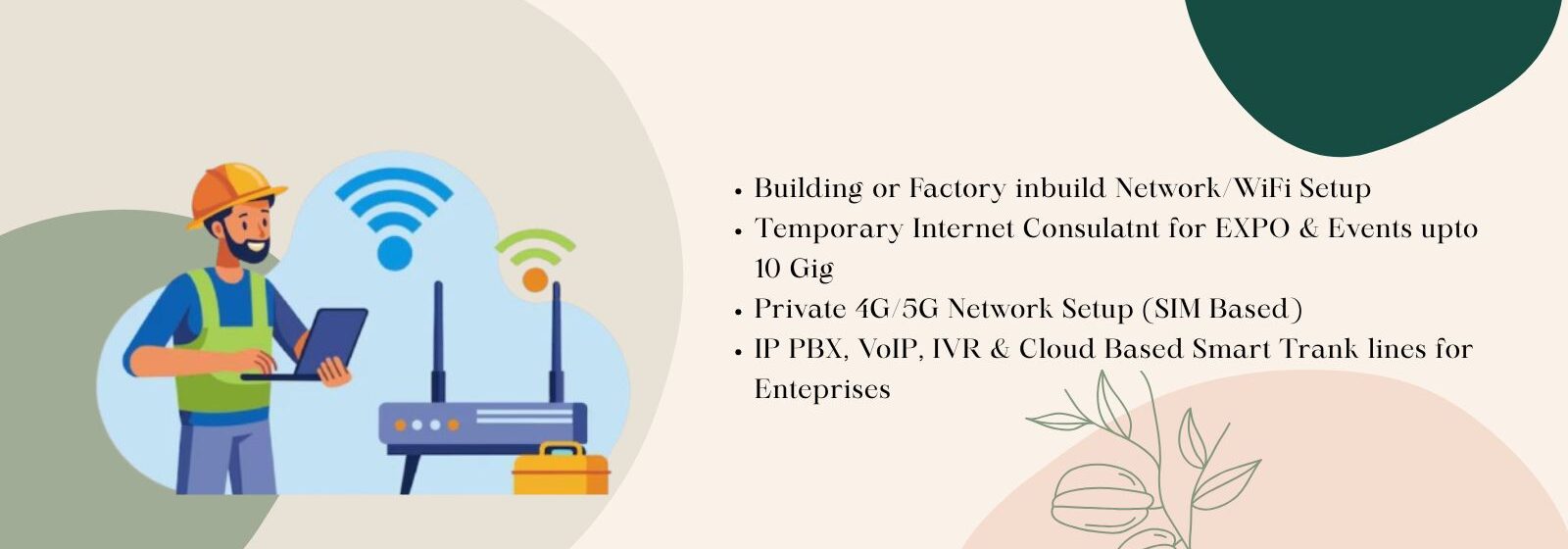 This analytical foundation drives the design of bespoke, high-impact solutions across areas such as optical fiber construction (UG and aerial), RF infrastructure, ISP network setups, event Wi-Fi and temporary broadband, voice & SMS platforms, WhatsApp Business API integration, and smart cloud communication stacks. By combining insights with implementation, we deliver strategies that are not just technologically sound, but also resilient, cost-effective, and tailored for real-world scale and performance.